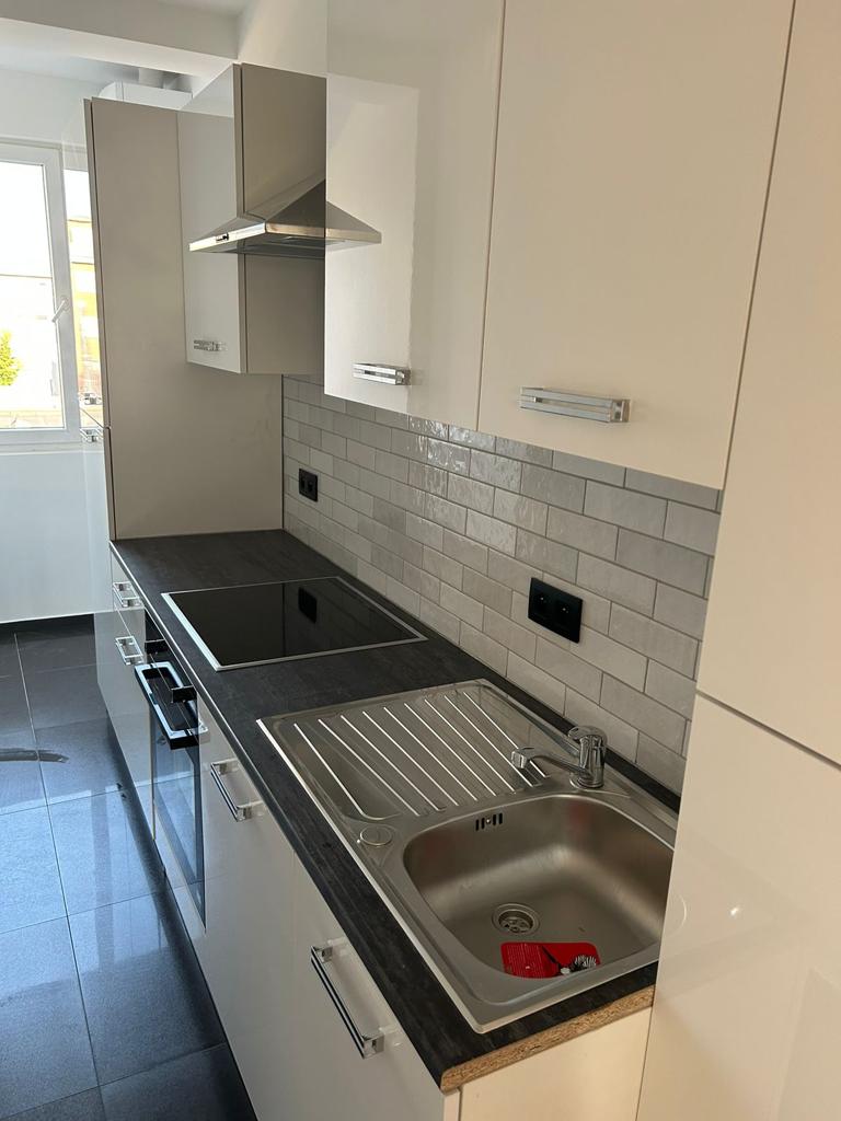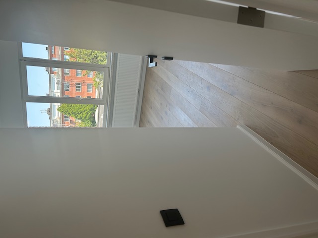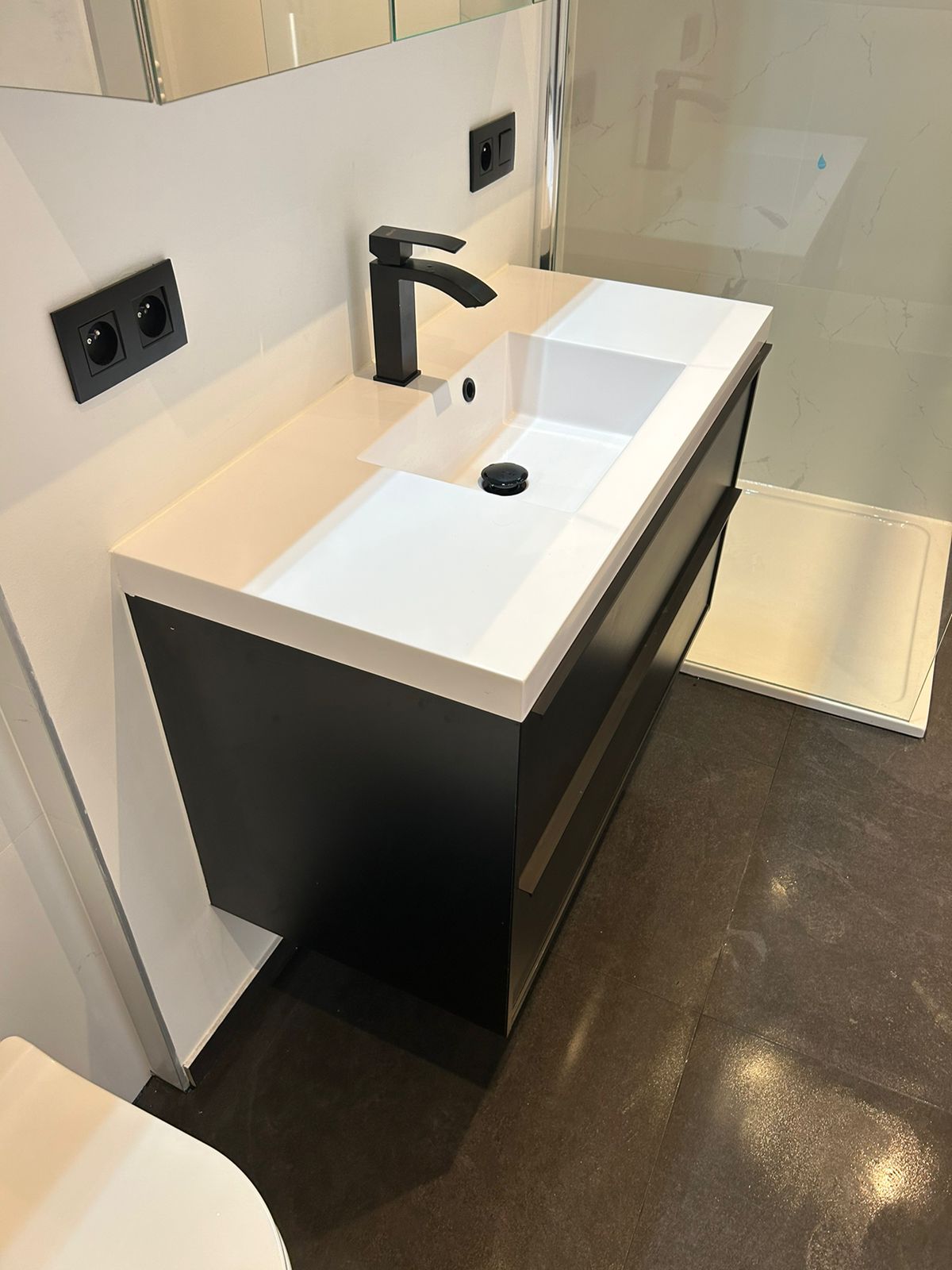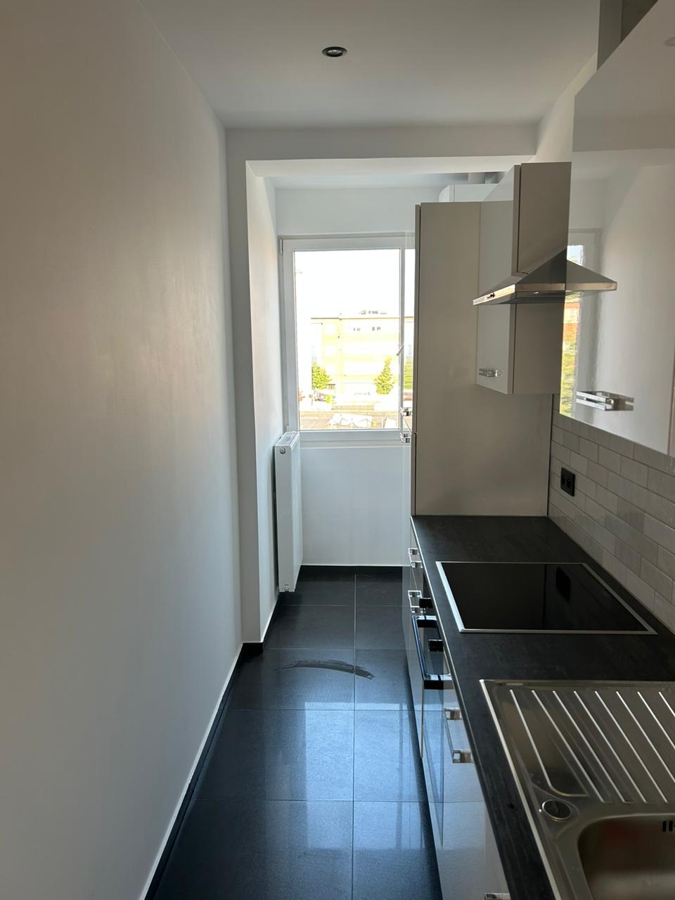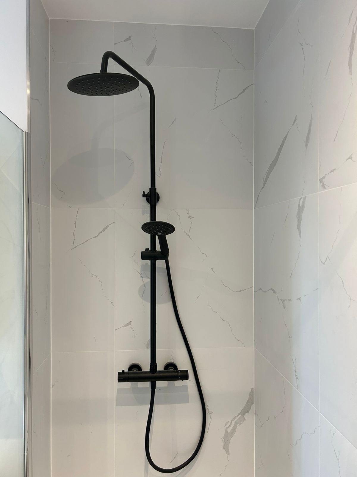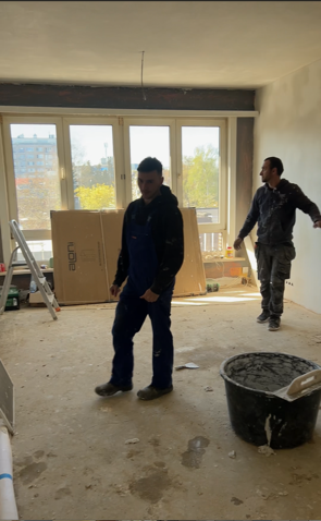 Voor het renovatieproject in Deurne, hebben we het hele appartement gestript en opnieuw opgebouwd. Nieuwe elektriciteit en sanitaire leidingen zijn geplaatst. In de woonruimte en slaapkamers is duurzaam parket gebruikt, terwijl de muren wit zijn geschilderd. De deuren zijn vernieuwd en voorzien van zwarte accessoires zoals klinken en afdekplaatjes. De badkamer is ruimer gemaakt met zwarte grote tegels, een hangtoilet met witte marmerstructuurtegels, en een enkele lavabo met één lade. Ook hebben we een spiegel met opbergplaats en marmerwitte tegels in de douche geïnstalleerd, samen met een handdoekradiator. De keuken heeft zwarte tegels en witte muren, en we hebben een basiskeuken met alle nodige attributen geplaatst.